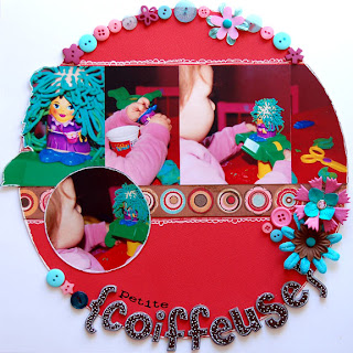 Une page en rond!! Faut le faire!! Mais j'adore!! Est-ce que ça existe des album en ronds??!! Cette page à été faite pour un défi! Merci de regarder!!