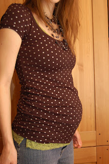 Et voici ma toute première photo de bédaine, elle est toute petite encore, mais elle est bien là! J'ai maintenant 11 semaines de fait! Nous avons décidé de ne pas demander le sexe du bébé... bon je ne sais pas si je vais réussir à patienter, mais il me semble que ça doit tellement être tout un trip!! En tout cas, on verra bien!!