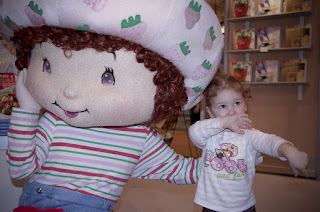 Ce matin, direction Place Bonaventure avec ma fille pour le Salon du livre. Nous y allions principalement pour voir Fraisinette! C'est une amie qui était sous le costume! Ma fille était tellement drôle, elle était hyper gênée et elle ne voulait pas aller la voir de près, mais elle la regardait attentivement. Mais quand elle est partie, elle a tellement eu de peine! Pauvre cocotte, elle pleurait à chaudes larmes, elle avait le coeur gros! Ensuite, on a fait un mini tour du Salon et nous avons mangé avec Caro. Après, retour à la maison, petite sieste et rendez-vous chez le chiro.