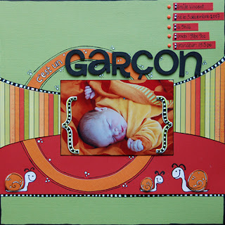 Ohh!! J'avais donc hâte de voir quelles pages de garçon tu pondrais! Elle est super belle, les p'tits escargots j'adore!!!!!! Et les autres pages sont sublimes!!! Mais dis donc, t'as un nouveau-né et tu trouves du temps pour toutes ces pages? Je suis jalouuuuse!!!