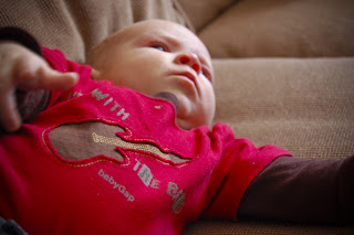 Voici mon coco avec son chandail de "rock star"! C'est l'une des trouvailles que j'avais fait à la "Boutique Culotté" lundi dernier.