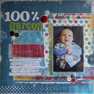 Mon Dieu! C'est trop drôle, je suis en train de faire une page sur le 3e anniversaire de mon neveu, et ça ressemble drôlement à ta 1ere page! Le même papier de fond, les mêmes bandes de papier... weird hehehe