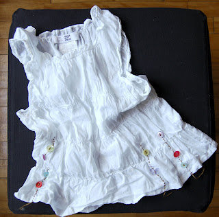 Et l'autre projet c'est une petite camisole bien ordinaire que j'ai acheté dans une friperie et que j'ai modifié en y ajoutant de la broderie et des boutons! J'aime beaucoup ce que ça donne, c'est tout discret, mais bien joli! J'ai pleins d'autre projets du genre en tête!! Faut juste que je trouve du temps!!
