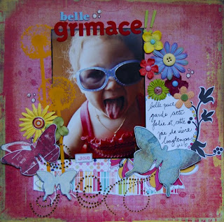 J'aime beaucoup cette page très "été" faite pour mon DT de Scrap en Vrac! J'ai vraiment adoooré travailler avec ces petits papillons de Scenic Route! J'en veux d'autre!!
