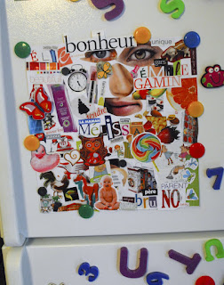 Hier, mon chum, ma fille et moi, ont c'est amusés à faire un collage! C'était le fun!! Et voici le résultat, une belle œuvre pour décorer le frigo!